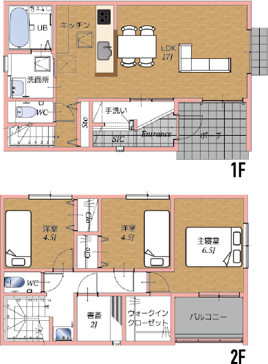 家族が自然と集まる17.8帖のLDKに、成長に合わせて使える2つの子ども部屋を備えたプラン。