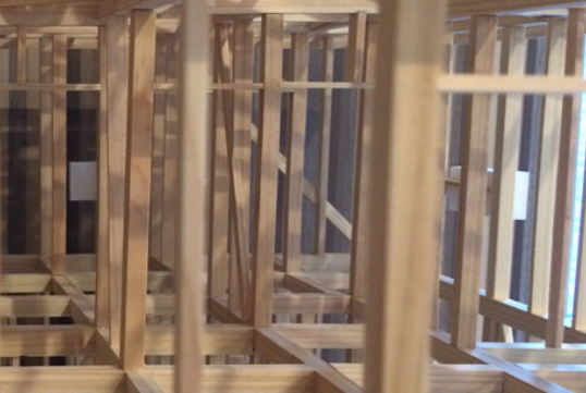 耐力面材「ハイベストウッド」を効果検証をしながら施工します。